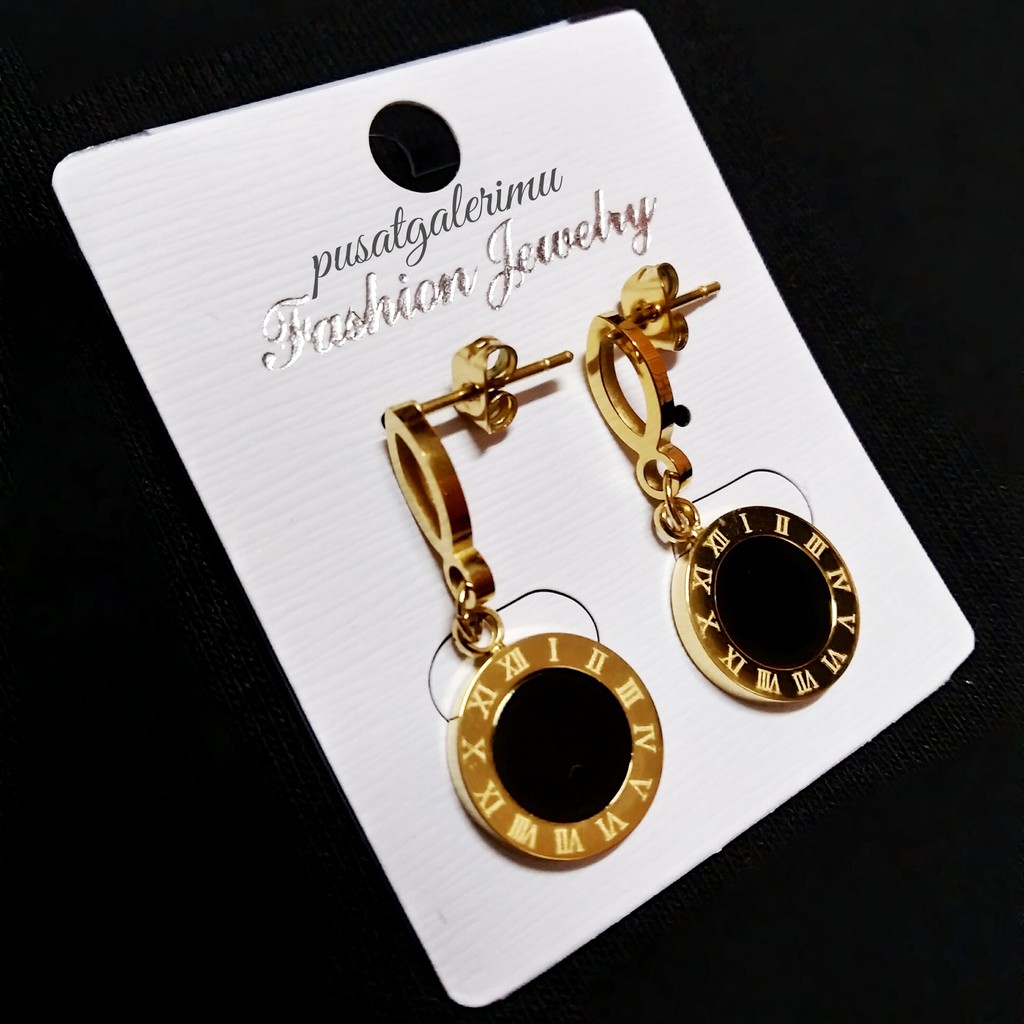 Anting Tiitanium Permata Hitam Model Roman Numeral Warna Gold Free Box Shopee Indonesia