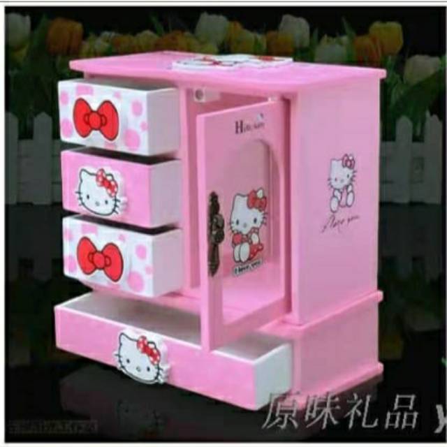 Kotak Perhiasan Lemari Mini Pernak Pernik Tempat Perhiasan Wooden Jewellery Box Hello Kitty Shopee Indonesia